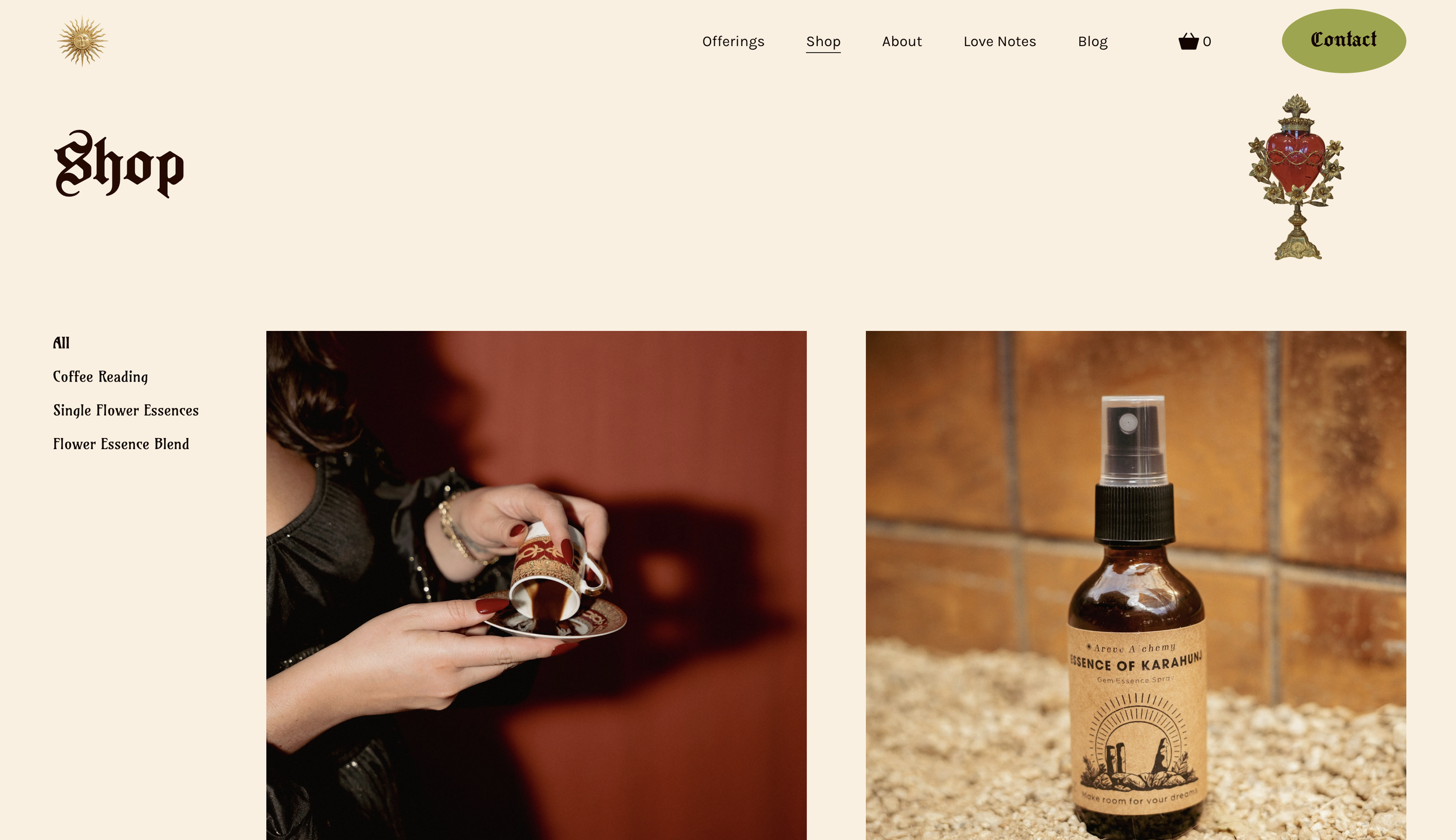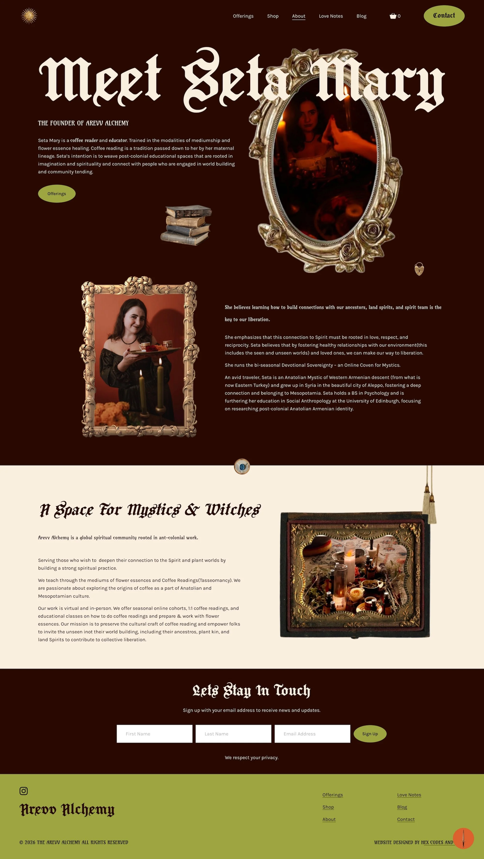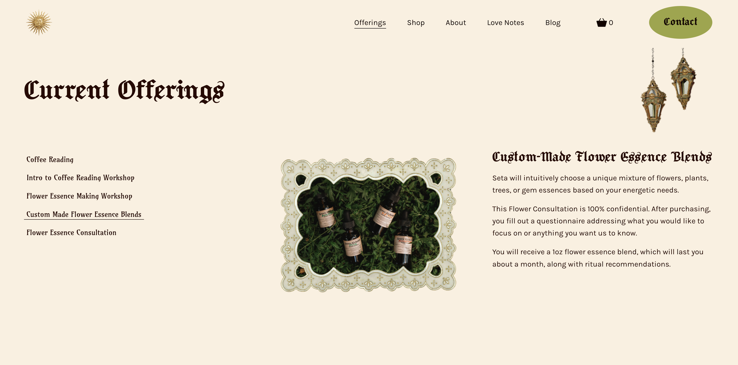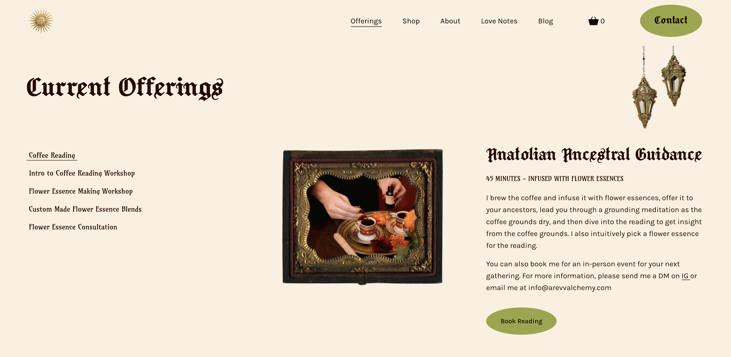 Before her Website Alchemy Day, Seta felt like her website wasn’t energetically aligned with her brand. It wasn’t giving the feel and mood she wanted: like you are entering a rich grandma’s house with vintage, gothic, and ancestral remembrance feels.