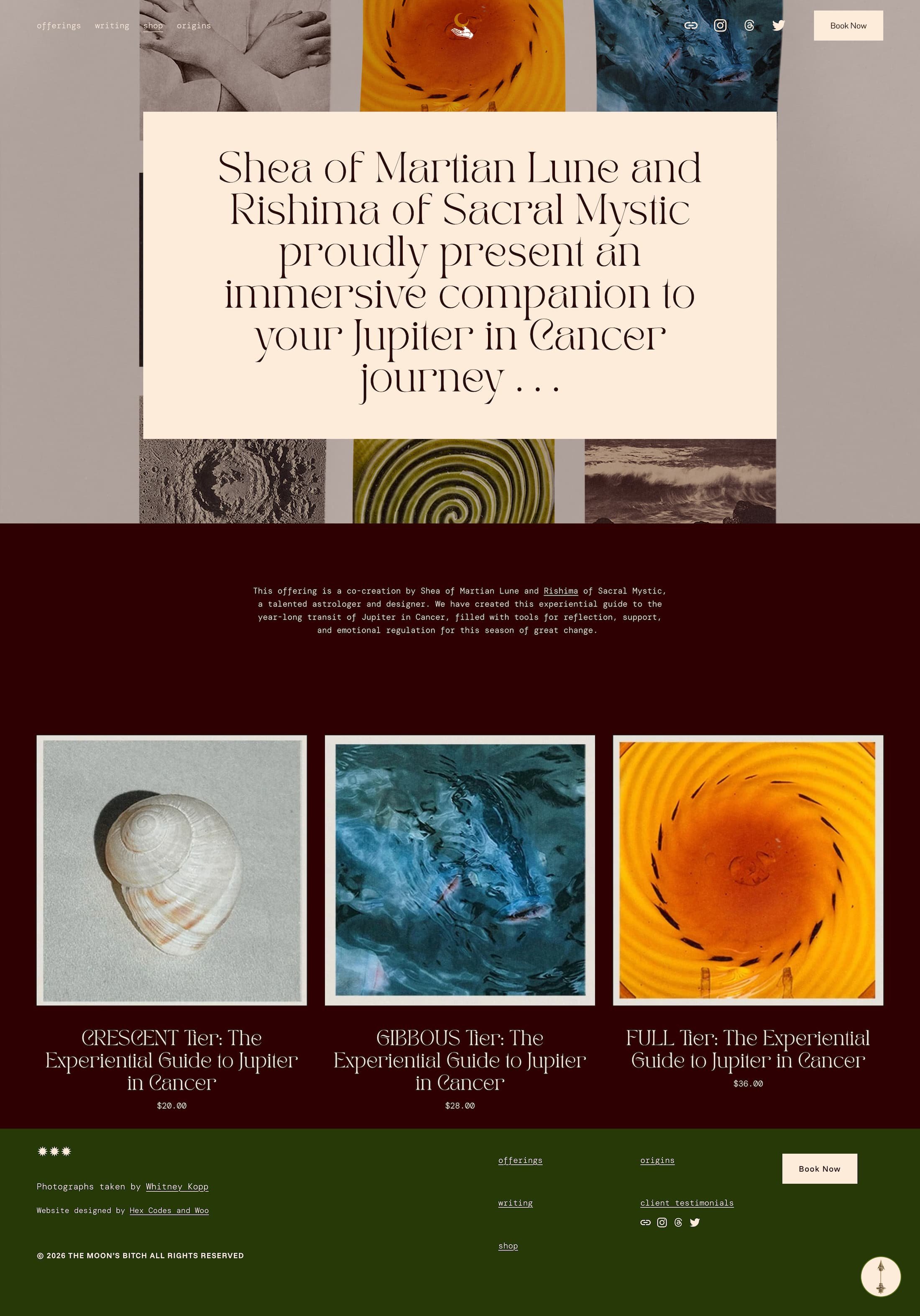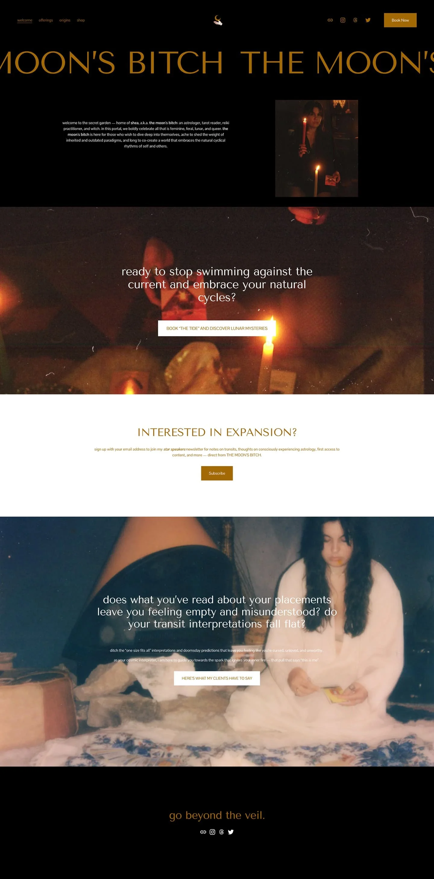 For sometime, Shea has felt that her site isn’t a reflection of her work, and that it’s not communicating to her audience who she is as a practitioner. She desired a site that revealed a greater sensibility of the magic that she offers.