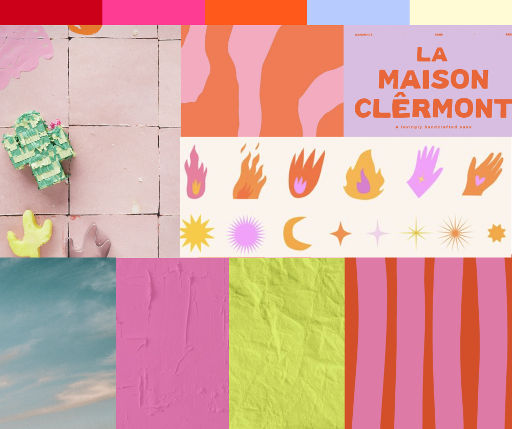 A mood board is curated visual collection of colors, images, patterns, and textures that sets or defines the style or feel for a creative project.